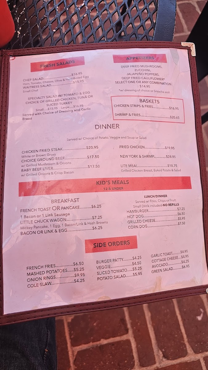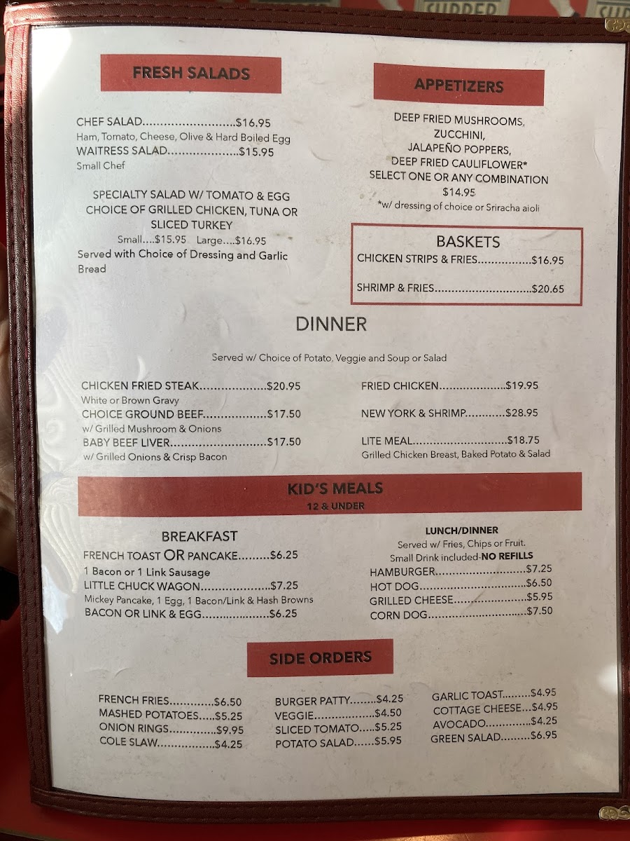 - Fresh Salads: Includes options such as Chef Salad and Waitress Salad, providing lighter meal choices.